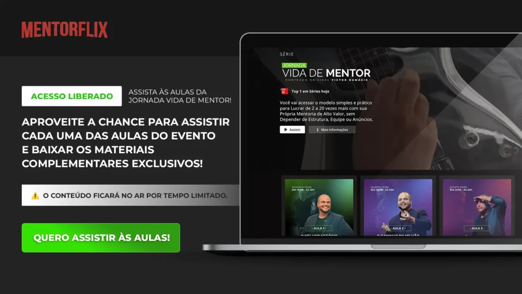 Envie sua aplicação e meu time entra em contato para agendar sua apresentação da mentoria.